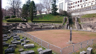 After Vieux Lyon, I mounted the steep hill up to La Croix-Rousse, which overlooks the city. I stumbled upon a Roman-Gallic ruin on my way that I'd had no idea existed... something that I surely could never had done in the US!